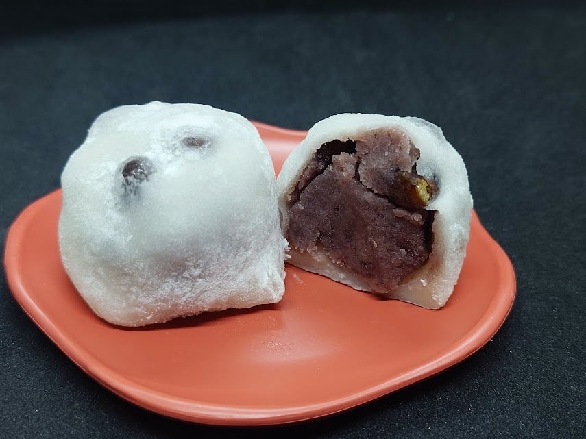 まるでシルクを纏ったかのような白さの大福生地の中には歯ごたえを残した赤エンドウ豆が練りこまれています。赤エンドウ豆の少し塩味が自家製こしあんの甘さを優しく引き立てています。モチっと伸びる生地に食べ応えのある赤エンドウ豆、そして優しいあまさのこしあんという3つハーモニーに虜になる方が多くいらっしゃいます。この時期大変おすすめの逸品です。